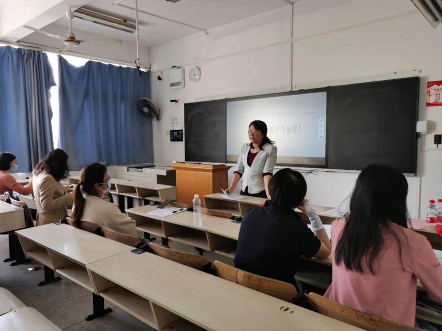 在研讨阶段,邓李梅教授在介绍国内多位教育专家的听评课标准后,并提出了“讲得清”“听得懂”“会做题”“能应用”等四条评课标准。她认为,周玲玲老师的课堂体现了“新”“趣”“活”“实”“美”等特点,建议形成快慢结合的教学节奏,并使用调动学生兴趣的结束语。张小菊教授指出,教师教育应当立足师范生的实际能力水平,认真分析课程目标和教材内容,并选择和组织好课堂教学内容,引导本科生掌握教材分析技能。陶丽副教授认为,周玲玲老师的课堂教学体现了一定的教学智慧,建议加强课堂教学的目标设计,加强对学生思维的课堂引导。刘学利副教授认为,周玲玲老师较好地运用了教育技术,精心组织课堂活动,建议加强教学方法的合理运用。
