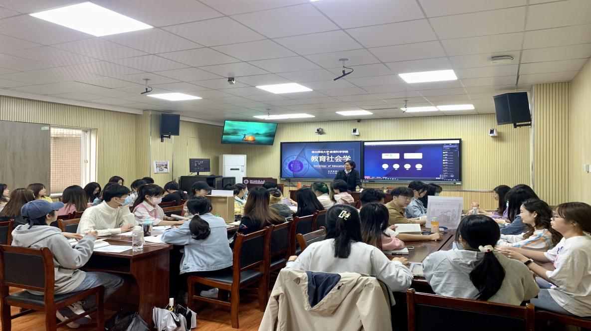 本次示范课的主讲教师是教育科学学院副教授余秀琴,授课对象为教育科学学院2001班教育学专业全体学生,教学内容是《教育社会学课程》第六章中的“教育中的基本社会角色——教师”。余老师对教师的社会地位、教师的双重角色、教师的权威地位、教师的职业社会化等进行了详细讲解,课堂氛围良好、学生参与度强,课堂整体体验感较为舒适。