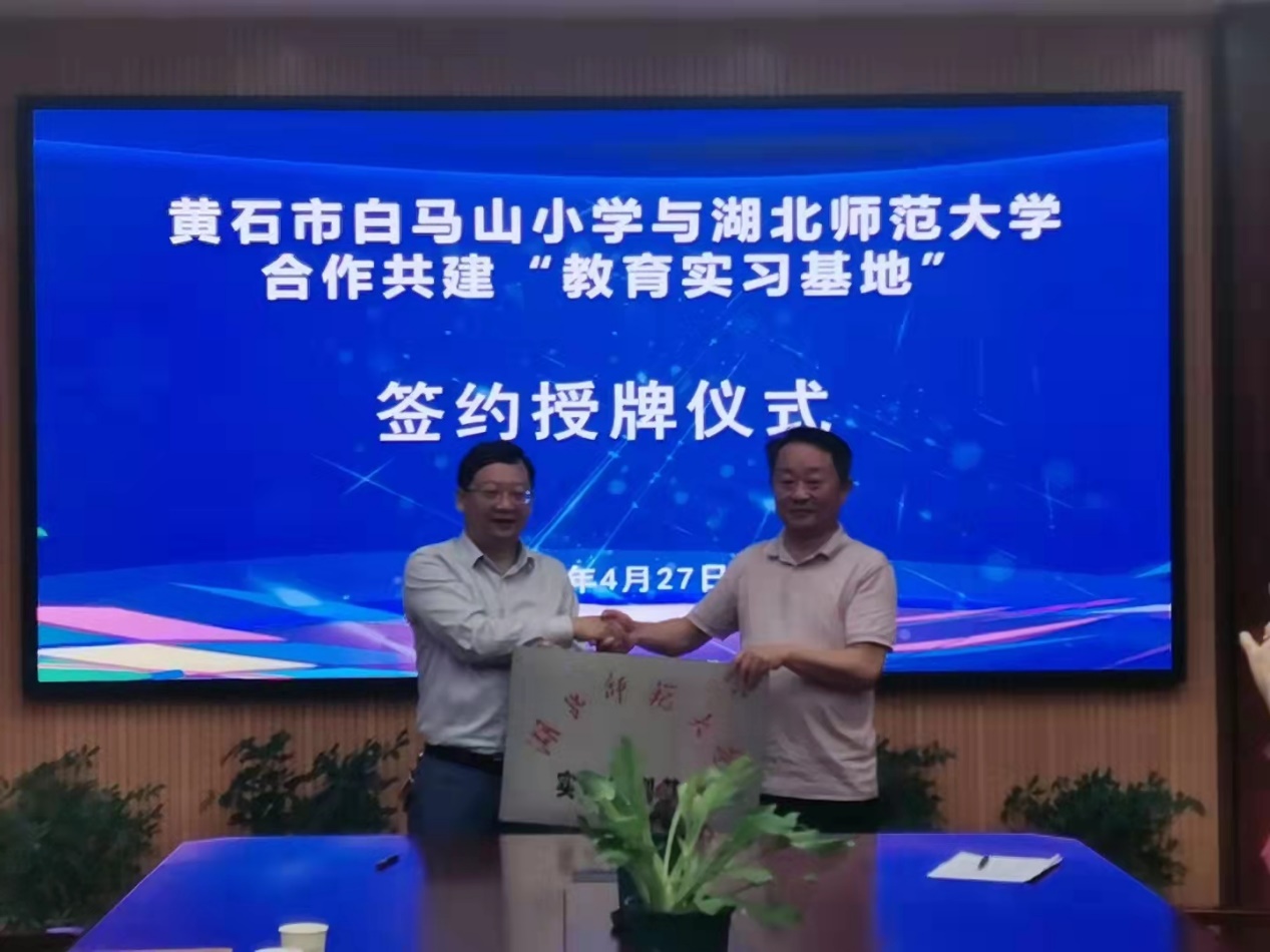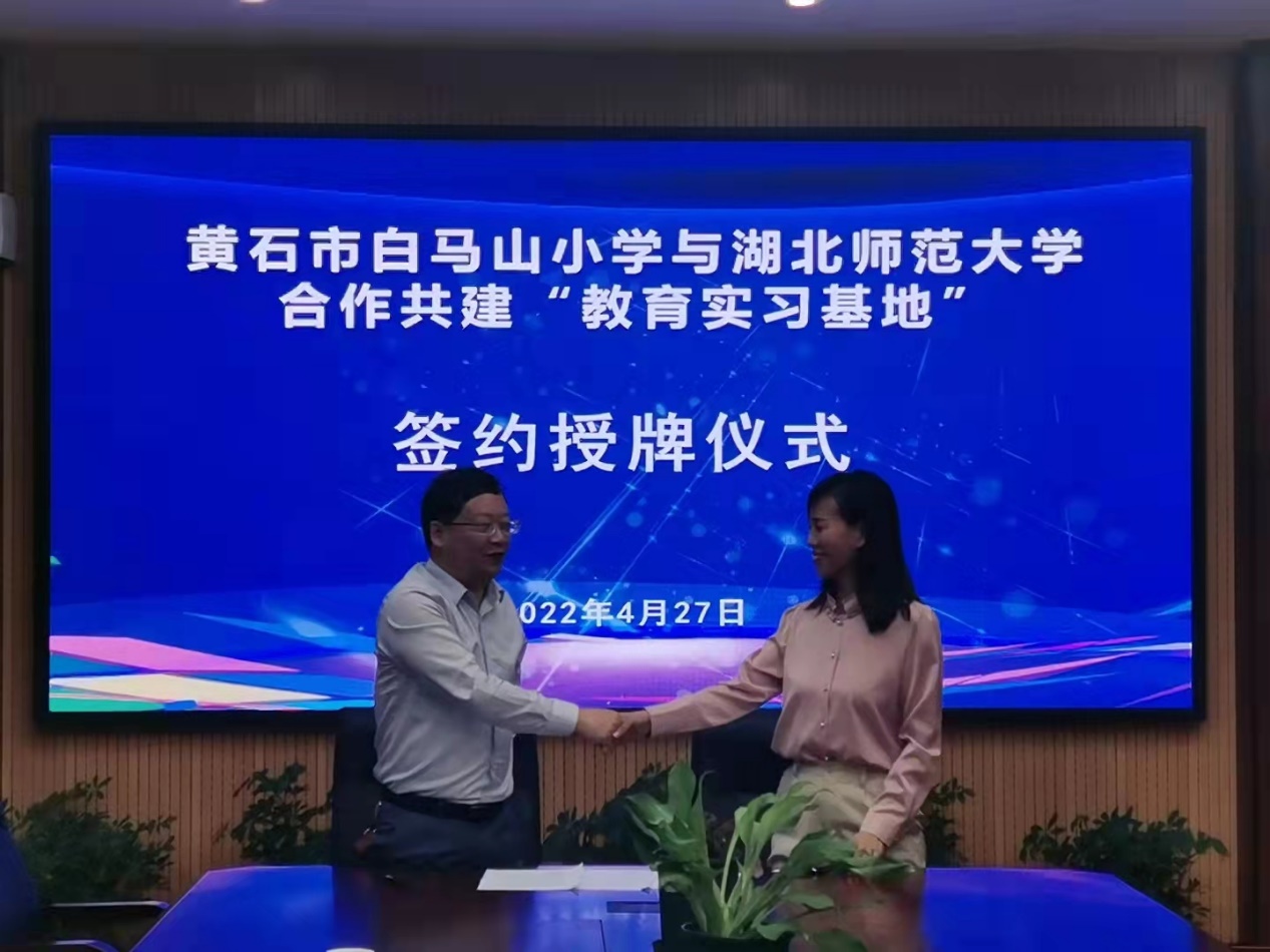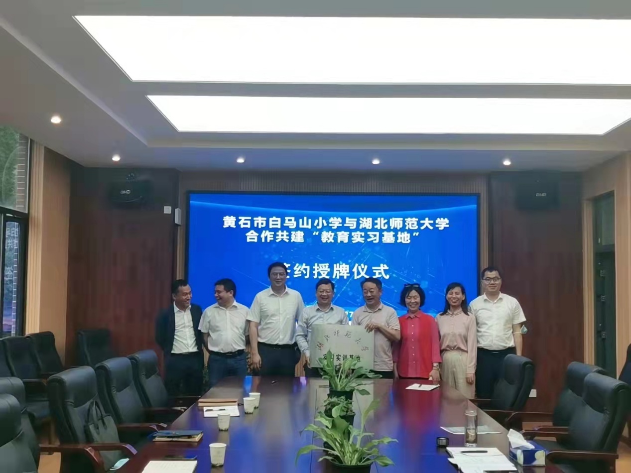 为进一步拓展我校教育实习基地,丰富实践教学资源,深化与基础教育的合作,4月27日下午,湖北师范大学教育质量监测与评估中心主任、教务处副处长秦海涛,教育科学学院执行院长朱浩,副院长崔波,小学教育系主任周英杰和教务处实践管理科张明红一行5人到黄石市白马山小学,举行双方合作共建“教育实习基地”签约授牌仪式。