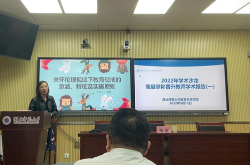 报告开始前,院长涂艳国为此次活动致辞。学术报告分别由张小菊教授和陶丽副教授主讲,张小菊教授以教师关怀与学生学习适应性为主题,分别从论文的研究缘起、文献梳理、研究设计、研究结论与讨论以及研究反思等方面进行了交流分享。陶丽副教授则从关怀伦理视域下教育惩戒的意涵、特征及实施原则进行了交流分享。会上涂院长与老师们探讨了论文研究结论与当下国家教育事业发展的联系,同时强调教师们应多交流,营造宽容、宽厚、宽松的学术氛围。