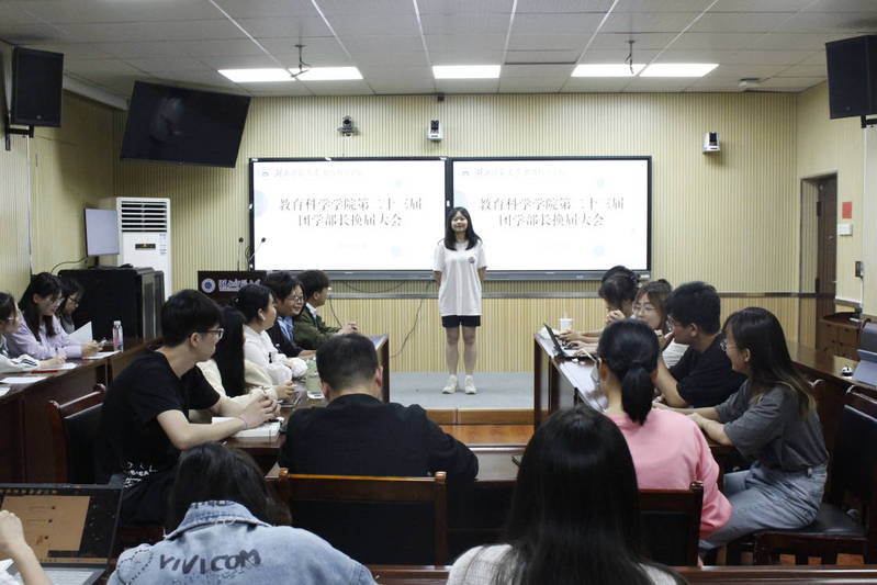 为了更好的开展学生工作,教育科学学院团总支学生会于5月14日下午于教育大楼1316召开教育科学学院第二十三届换届竞选大会。参加本次竞选大会的有辅导员张琦、刘丽娟及第二十二届全体学生干部,我院团学二十三届部门干事参与了此次竞选。