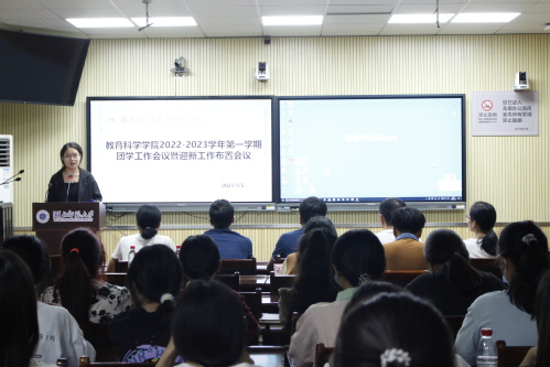 为更好地推进团学工作的开展,落实迎接新生的相关工作,教育科学学院于9月5日晚在教育大楼1316A会议室举办了2022-2023学年第一学期团学工作会议暨迎新工作布置会议。党总支副书记刘刚,团总支书记王浩,辅导员秦姗姗、张琦、刘丽娟以及各部门部长与新生班主任参加会议。