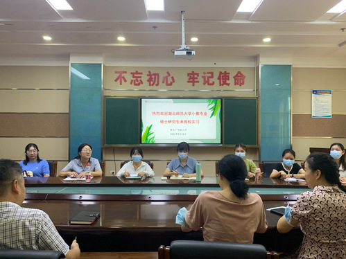 9月16日,我院邓李梅教授带领六名2021级小学教育研究生到广场路小学实习。广场路小学党总支部书记陈敬涛等领导对此次硕士研究生来校实习表示了热烈欢迎。负责教学管理的纪燕校长对此次实习提出,实习时间要做统一管理,规范办理请假手续。按疫情防控要求,统一在校就餐。随后,党支部书记刘莉老师对此次实习总安排做了简单介绍,实习内容主要是听课、评课,说课。由于硕士研究生安排的指导教师多是领导层面的,实习生在增强教学技能的同时也需要跟着老师学教学管理,参与各种会议,积累经验。实习生们对实习内容和要求做好了记录。随后,党支部陈书记对实习要求进行了补充,所有的实习生都要做好“五天一检”,并配合保卫部门要求每日提供健康码,测温进校,学校专门给此次实习生配备了休息室。陈书记对此次六名硕士研究生寄与了殷切期望,希望通过此次实习同学们能有所收获。最后,带队邓李梅老师对广小对实习工作的全力支持表示了感谢,也对再次叮嘱同学们认真踏实实习。