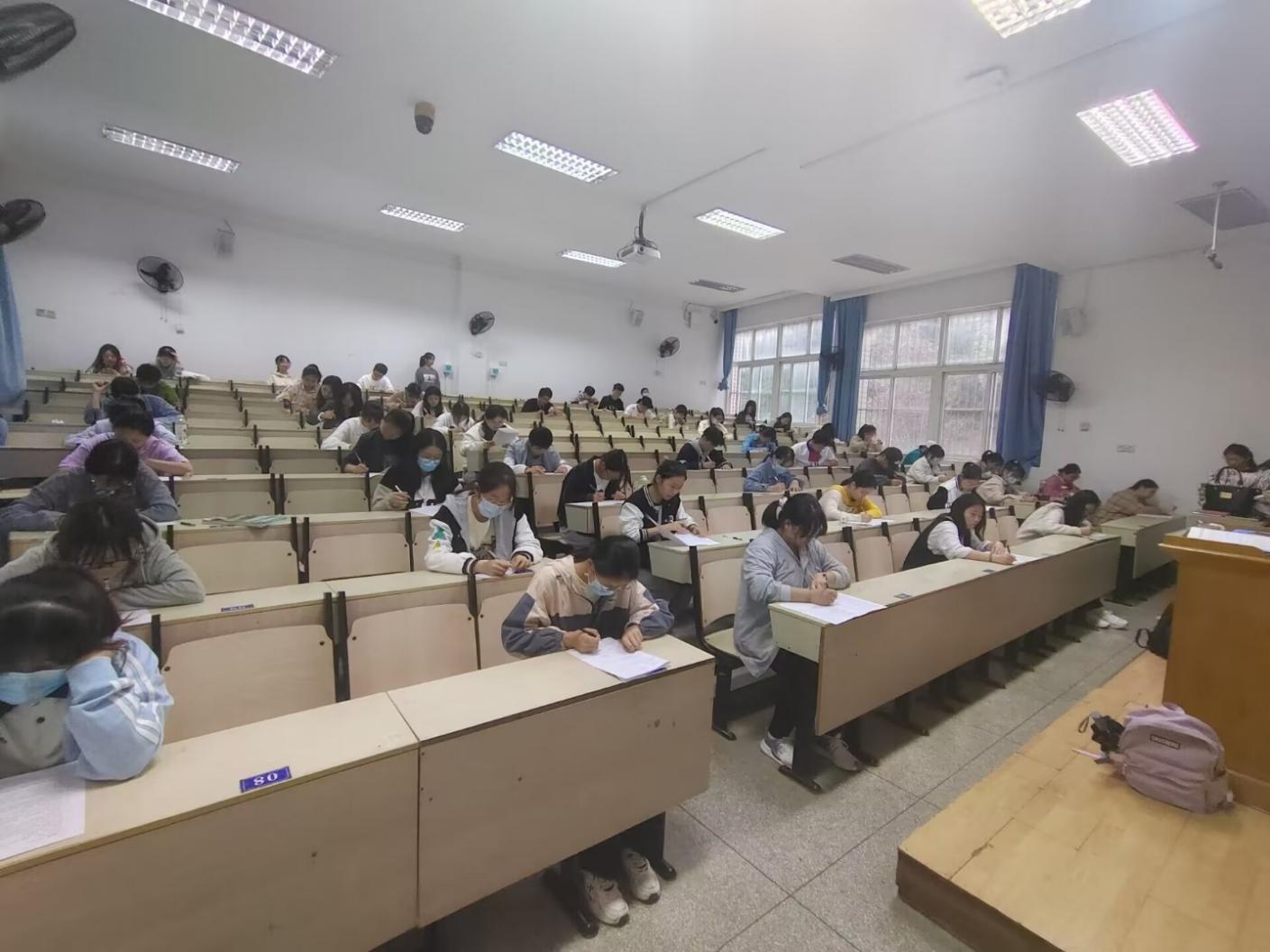 首先,校园安全部干事组织参赛者们有序地入位就坐,并为他们宣读相关参赛规则。随后干事分发试卷进行考试,同学们聚精会神地埋头作答,考场里只有笔和纸的沙沙声。最后由干事在规定的时间内收取参赛者的答试卷并及时进行批改、统计结果。