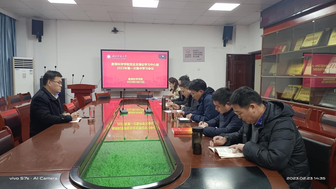 2023年2月23日下午,教科院党总支在教育大楼1317A会议室召开了理论学习中心组2023年第一次学习会议。会议由院党总支书记徐明波主持,全体党总支成员和党政办主任参加了会议。