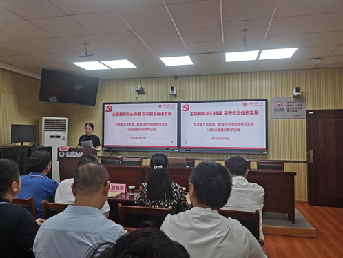 6月19日下午,教育科学学院教师党支部与机关第五党支部在教育大楼1316A举行“主题教育凝心铸魂,实干担当促进发展”的6月份主题党日活动。副校长王赛玉以普通党员身份参加联学活动并讲授党课,机关第五党支部全体党员、教育科学学院教师第一党支部全体教师党员、教育科学学院教师第二党支部全体教师党员、九三学社湖北师范大学委员会委员张明红参加活动。活动由教育科学学院教工第一党支部书记赵幸主持。