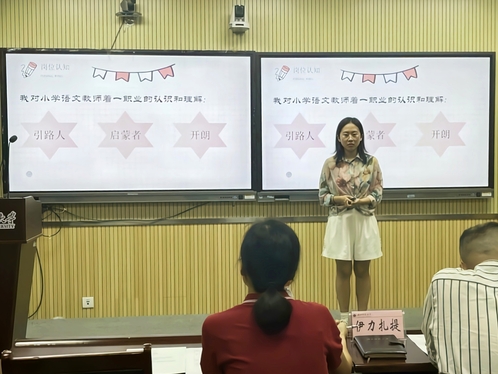 比赛共分为两个环节。首先,由四位选手依次上台结合生涯发展报告进行陈述和展示。随后,现场的评委老师结合选手陈述和现场表现进行提问并给予指正与建议。刘丽娟老师提醒就业赛道选手要以一个准就业者的姿态进行讲述,并将自己的实习经历与比赛内容相结合呈现出一定的针对性。伊力扎提老师强调参赛选手应注意仪态与着装问题,加强职业目标与规划的契合度。最后,根据各位选手的综合表现,确定比赛最终的校赛入围名单:杨雅舒、张晓蕾。
