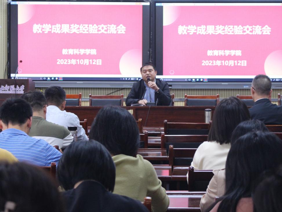 为了进一步激发我院教师教育教学改革的热情,开拓创新,全面提升教育教学质量,教育科学学学院于10月12日在教育大楼1316开展了教学成果奖申报交流会。全体教师参加了本次会议,崔波副院长主持了会议,邓李梅教授、邹从容教授进行了经验交流,涂艳国院长进行了总结。
