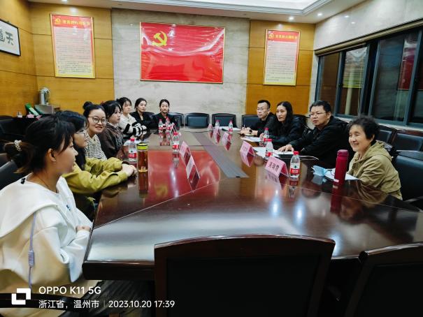 实习检查分为三个环节,首先,实习检查小组和实习学校领导及教师代表座谈。温州市特殊教育学校校长王邦泽、副校长胡乐、教务主任黄锦秀实习指导教师代表参与了座谈。座谈中,刘文华副处长介绍了学校对于实习工作的相关规定,王邦泽校长介绍了温州市特殊教育学校的相关情况,温州特校的实习指导教师对我院特教系的八位实习生的实习情况给予了介绍,充分肯定了他们认真学习的态度,结合指导教师的反馈,吴瑞霞教授、张小菊教授及张明平老师与温州市特校的领导和老师们就特教专业人才专业认同感的培养、教学技能的提升等方面进行了深入探讨。刘文华副处长、张小菊副院长对温州特校给予我们实习工作的支持表达了感谢,期待两校之间在特殊教育师资培养方面能够有更长久的、更高质量的合作。