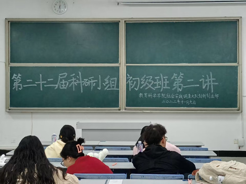 为提高学员们的科研能力,增进其对课题拟定及问卷撰写的了解,教育科学学院社会实践调查大队创新创业部于11月9日晚上七点,在科技大楼9504举办了第二十二届科研小组初级班理论培训第二讲。本次活动主持人为柳诗语。出席活动的嘉宾为教育科学学院副院长、教授张小菊,第二十二届科研小组全体成员参与本次活动。