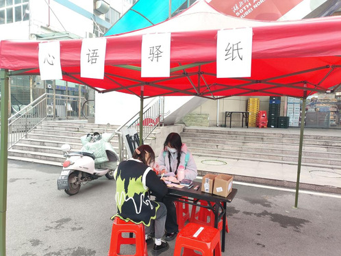 为了帮助大学生合理宣泄负面情绪、调整心态,提高同学们的自我情感调适能力与善待他人的共情能力,教育科学学院学生会心理部于11月26日上午8:00在琼林苑对面举办“心语驿纸”摆点活动。心理部干事和许多对此感兴趣的同学参与了此次活动。
