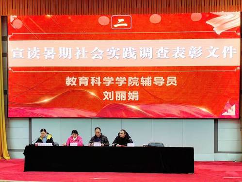 会议第二项,社会实践表彰及动员大会正式开始。首先,社会实践调查大队实践部部长王雨晨介绍寒暑期社会实践活动相关工作,为同学们讲解相关事宜,并呼吁更多的同学参与其中,完善自我,不断提升各方面能力素养。之后,辅导员刘丽娟宣读2023年暑期社会实践调查表彰文件,由学院领导为在暑期社会实践活动中表现卓越的学生颁奖。随后,暑期社会实践优秀学生代表吴希葶上台发言,她表示社会实践是一次珍贵的锻炼和实践的机会,也是增知识、长才干的大好平台,为同学们分享自己的经验及心得体会。接着进行大会第三环节,2023年教育科学学院微课大赛表彰,由各班班主任为微课大赛获奖人员颁奖。