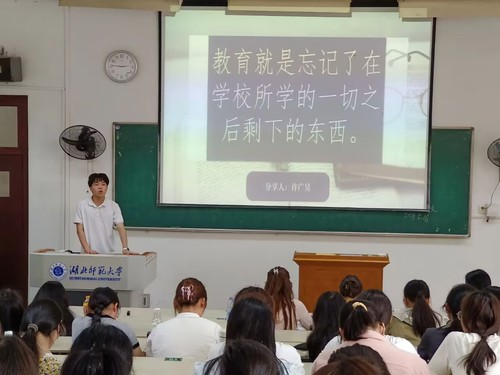 为了让青年通过分享教育家名言,从中感悟家国情怀底色,为教育强国建设民族复兴事业贡献青春力量,教育科学学院青年传媒中心和基础教育促进协会于5月16日下午在教育大楼1j13举办“学名师嘱托,立青年之志”演讲比赛。参与比赛的评委有教育科学学院团总支副书记段小芳,学生自律委员会主席金依和青年传媒中心部长李馨月。本次比赛由青媒干事王怡婷主持。参与本次比赛的共20余位选手。