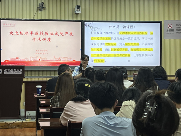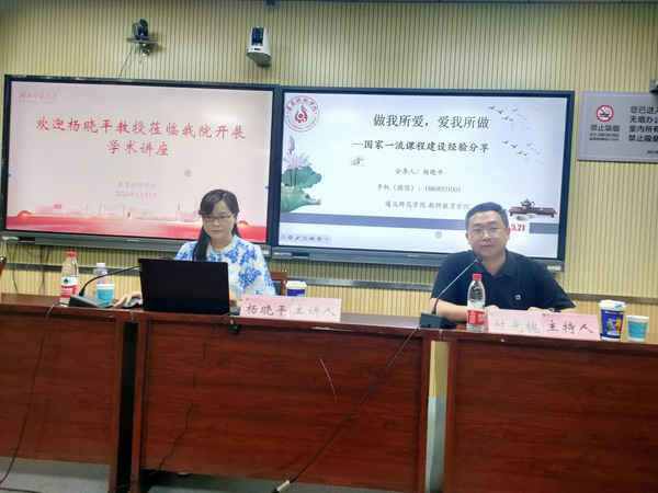 为了进一步加强国家一流本科课程建设,提升本科教学质量。5月21日,遵义师范学院教授杨晓平应邀来我开展题为做我所爱,爱我所做国家一流课程建设经验分享”的学术报告会。报告会由教务处副处长付光槐主持,院师生代表聆听了此次报告会。