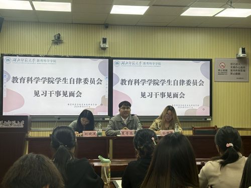 为助力见习干事了解各部门工作内容,增进组织内部的相互了解与沟通,教育科学学院于10月17日中午在教育大楼1316A召开了第四届学生自律委员会见习干事见面会。参加此次见面会的有辅导员夏青腾老师,以及学生自律委员会全体成员。