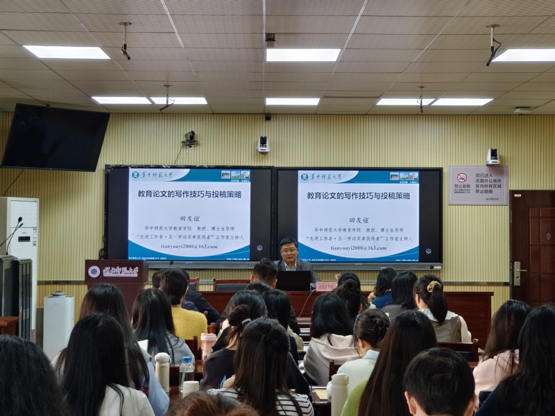 为进一步提高我院师生的论文写作水平、营造更加积极活跃的学术氛围,教育科学学院于10月23日下午邀请华中师范大学教育学院副院长田友谊教授在教育大楼1316A报告厅开展了主题为《教育论文的写作技巧与投稿策略》的学术讲座。本次讲座由崔波副院长主持,我院教师及研究生参加。