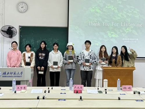 为营造良好的英语学习氛围,进一步提高教育科学学院学生英语口语表达能力,教育科学学院于1027日下午在教育大楼1J13举办了“新生杯”英语演讲比赛。湖北师范大学英语演讲队22级队长颜靖、2022年“新生杯”一等奖、2022届外国语演讲比赛一等奖和最佳语音奖获得者严文青、2022年“新生杯”演讲比赛二等奖获得者王梦慧作为本次比赛的评委莅临比赛现场。