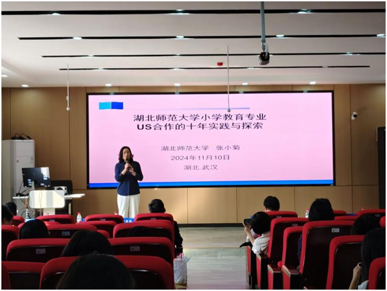 张小菊教授在“新文科背景下一流专业实践共同体建设”平行论坛上作了题为“湖北师范大学小学教育专业US合作的十年实践与探索”的报告,其报告获得了与会专家学者的共鸣。该平行论坛还有来自温州大学、华中师范大学、湖北第二师范学院的专家报告,从不同视角对新文科背景下一流专业实践共同体建设进行了深度交流。