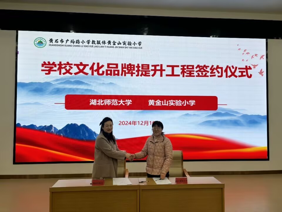 12月10日,湖北ty8天游平台登录教师团队承担的“学校文化品牌提升工程”签约仪式在黄石市广场路小学教联体黄金山实验小学报告厅顺利举行。我院教师邓李梅、黄娅、王明、柴霞、汪辉,黄金山实验小学党支部书记兼校长王娜、副书记石文建、副校长刘鹏和其他学校领导、中层干部参加了此次签约仪式。