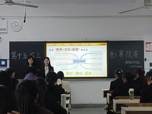 为提升大学生创新意识、创意思维和创业能力,教育科学学院社会实践调查大队创新创业部于2月27日下午在教育大楼1204教室开展第十五届全国大学生电子商务“创新、创意及创业”院赛。本次比赛的评委有教育科学学院团委书记刘丽娟,辅导员张琦、夏青腾,以及团委学生副书记雷伍娇。