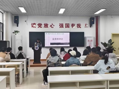 为强化班级学风建设,规范晚点名与请假流程,提升22 、23 、24 级监察委员专业能力,教育科学学院校园安全部联合学风建设部于2025年2月28日在25栋至诚一站式学生社区举办了监察委员培训活动。出席本次活动的有校园安全部部长王维娜、学风建设部部长胡志强及各班监察委员。