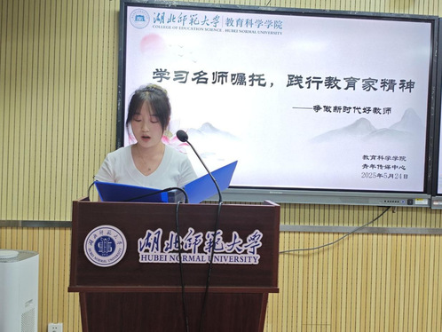 为深入学习教育家精神,培养新时代教育工作者。教育科学学院青年传媒中心于5月24日下午在教育大楼1316举行了“学习名师嘱托,践行教育家精神”演讲比赛。出席并担任本次活动的评委有教育科学学院第25届团委学生副书记许广昊,教育科学学院第26届团委学生副书记方李淼、冯平丽。本次活动由青年传媒中心张昔雨主持。